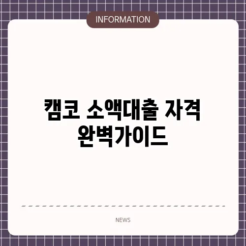 캠코 소액대출 자격 완벽가이드